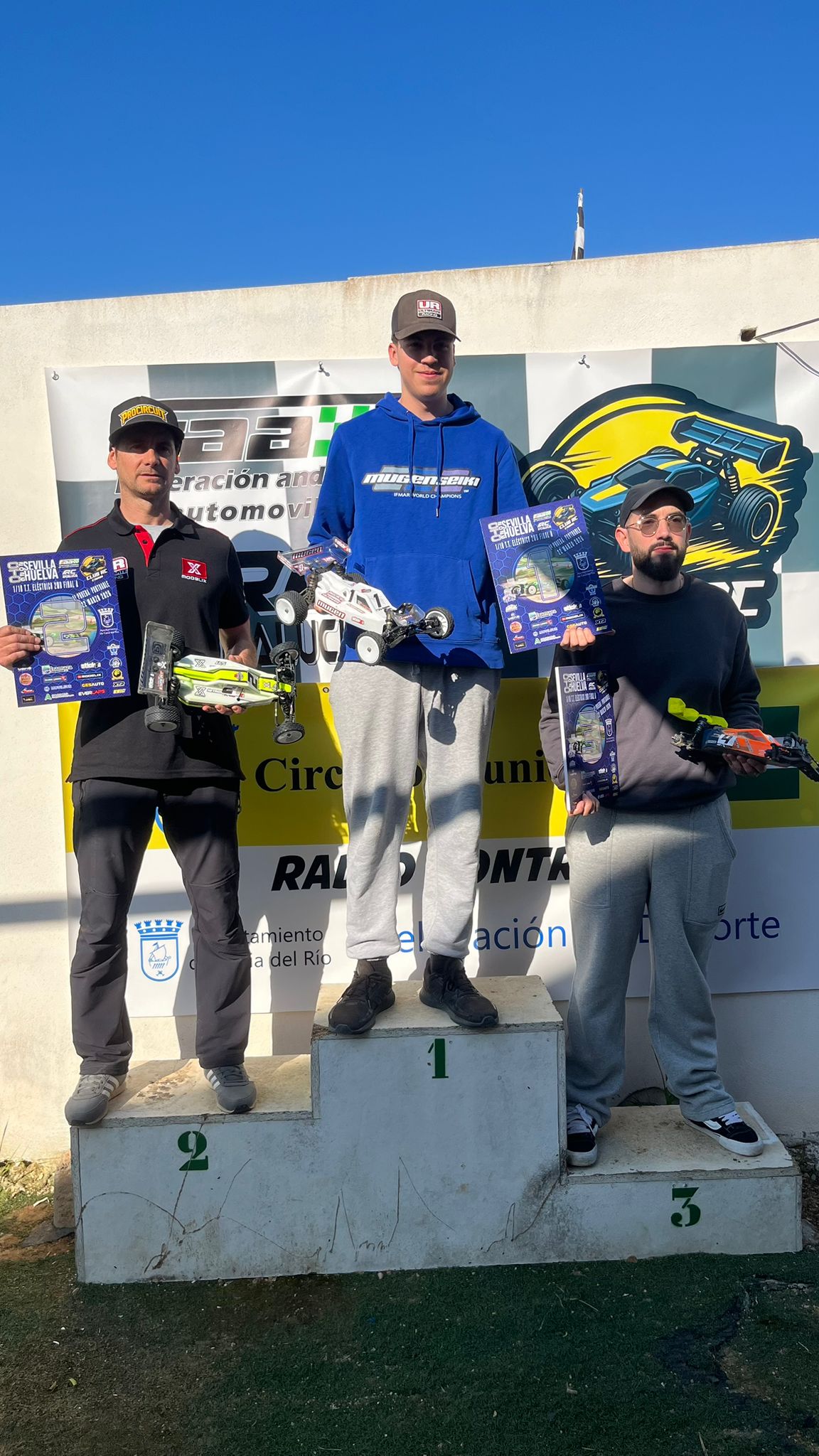 El segundo escalón del podio fue para todo un clásico del RC andaluz, Alex Venerosii. Acostumbrados a verle brillar en 1/8, demostró que su técnica en 1/10 es exquisita. Apoyado en su gran conocimiento del trazado y tras un acertado ajuste en el diferencial de su Mugen, se aseguró una brillante segunda posición. ¡Seguro que le vemos peleando por el campeonato!