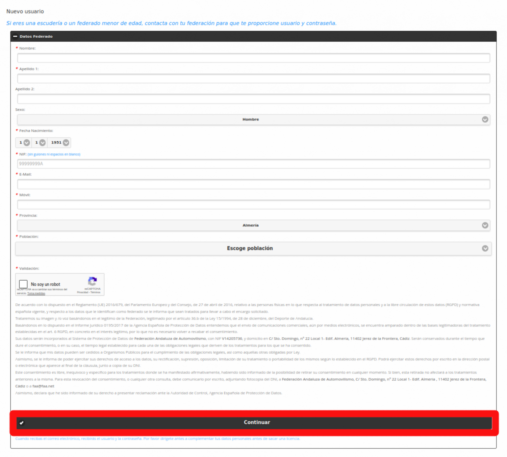 Rellena el formulario de registro con tus datos personales básicos y pulsa «Continuar».