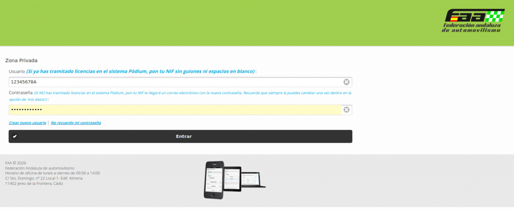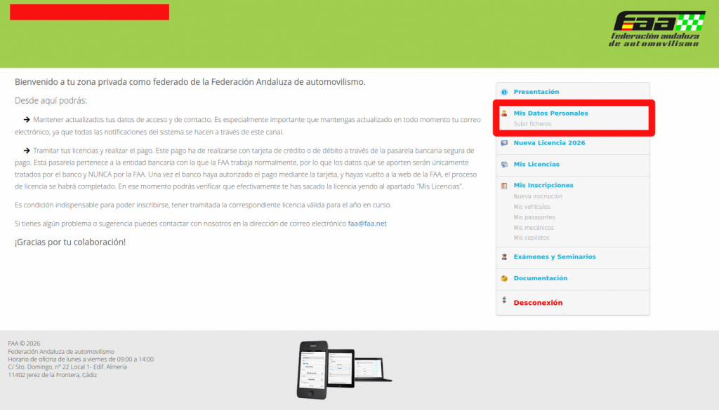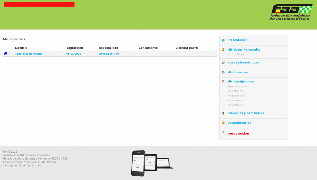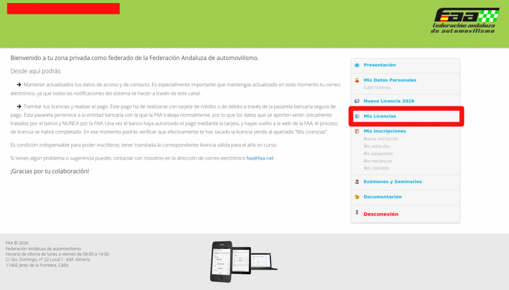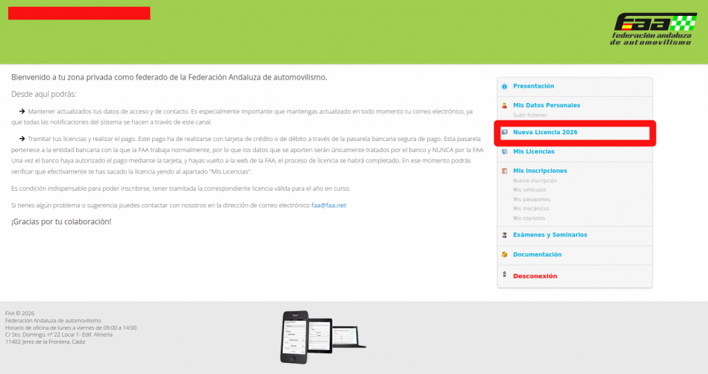 Una vez dentro de tu área privada, verás varias opciones. Pulsa en el botón: «Nueva Licencia 2026».