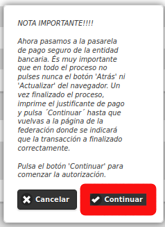 Antes de entrar en la pasarela bancaria, aparecerá un mensaje de advertencia.